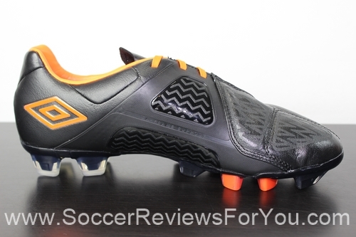 There aren’t many shoes that match the leather quality of the Umbro Geometra 2 Pro. Not only does the soft kangaroo leather upper make for a great touch on the ball, but it also allows for an extremely comfortable fit. Kangaroo leather spans the entire forefoot area of the boot, as well as the entire lateral side panel, allowing for a very soft and flexible feel across the entire front half of the boot. The mid-foot is crafted from a slightly stiffer, more supportive synthetic, in the form of what Umbro calls the “A-Frame Support Cradle”. This section of the upper is designed to hug the instep and secure the mid-foot inside of the boot, and it does that very well. The Geometra 2 Pro is part of that rare breed of soccer cleat that is designed to provide a very solid and supportive fit.