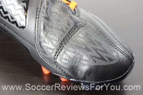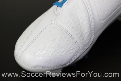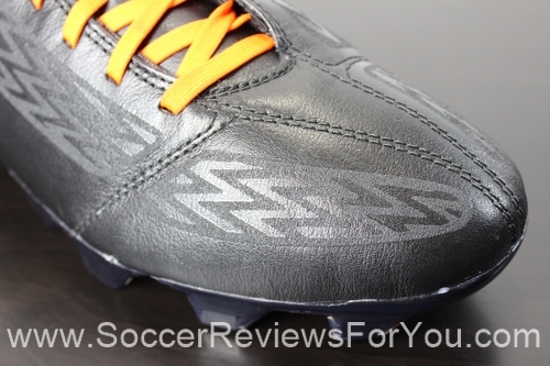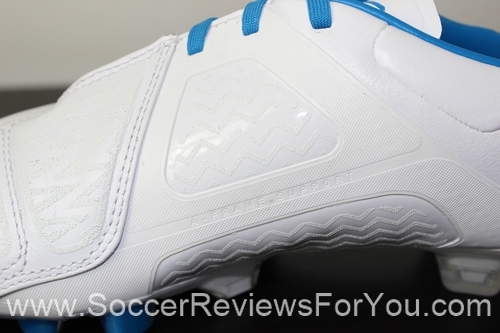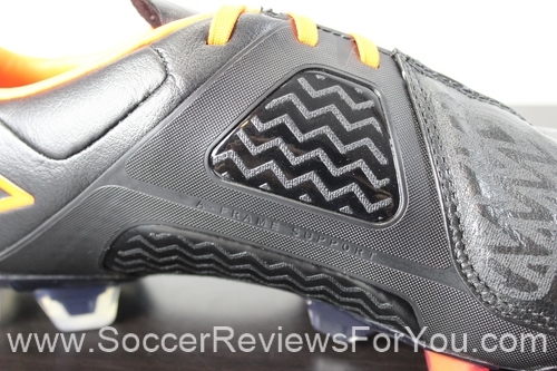 The instep of the boot also features an interesting control element. Filling out the gaps in the A-Frame Cradle are two large memory foam pads, finished with the same rubberized print found on the leather section of the upper. The finish on the pads is a lot more sticky that the leather part of the boot, allowing for plenty of grip on the ball when passing. The memory foam definitely does its part to help absorb some of the impact when controlling a pass, but admittedly has somewhat of a bulky feel.