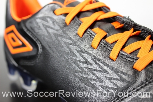 The key to a good feel for the ball is a quality upper, and the Geometra 2 Pro gets that just right. Simplicity is king in this situation, as Umbro has opted for a classic kangaroo leather to make up the majority of the upper. The leather is incredibly soft and has a nice thickness to it, offering a touch on the ball that is tough to beat. To enhance the feel of the leather, Umbro has included a slightly gritty, rubberized print across the majority of the upper. In the form of a zigzag pattern, the ultra-thin print provides a little bit of extra grip on the ball, without feeling sticky, which is what sets it apart from other grip elements on the market. I found the increased friction to also help in providing just a little bit of added grip on the ball in wet playing conditions, which is always nice.