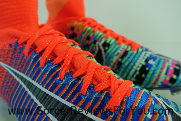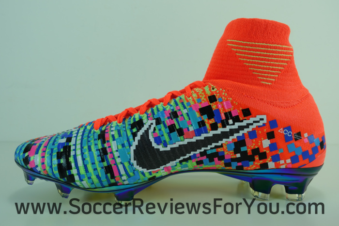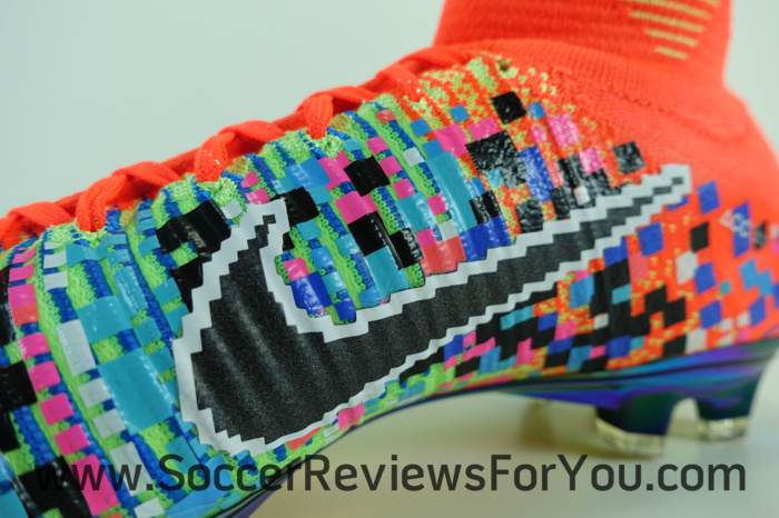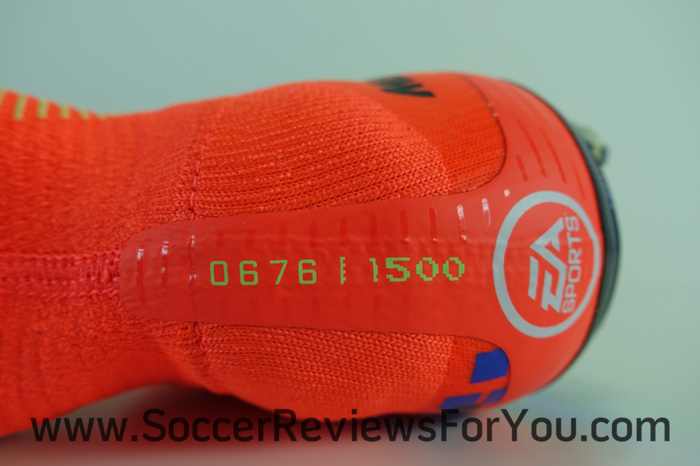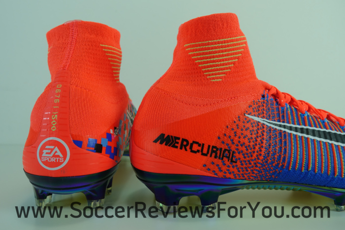 As a nod to the advancements in gaming technology, the medial side of the boot has a pixelated 16-bit graphic that transitions to high-definition on the lateral side. The EA SPORTS logo appears on the sockliner, lace and heel. A special Mercurial logo was designed just for this boot and its accompanying shoebox and bag. Much like the upper, the logo also transitions from high definition to 16-bit. A golden thread through the laces and an iridescent plate completes the design. Limited to 1,500 pairs, each boot is individually numbered on the heel.