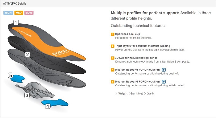 The CurrexSole ActivePro insole is available in Low, Medium and High arch variations. See below.